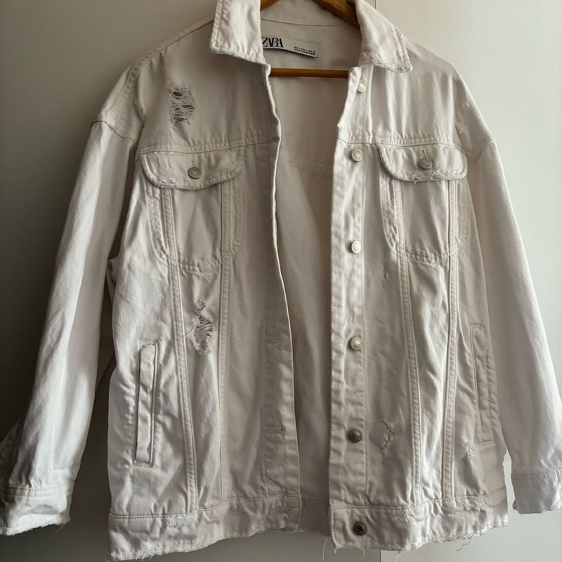 Jaqueta jeans top branca destroyed