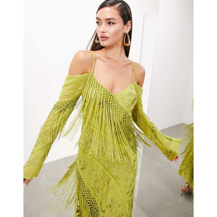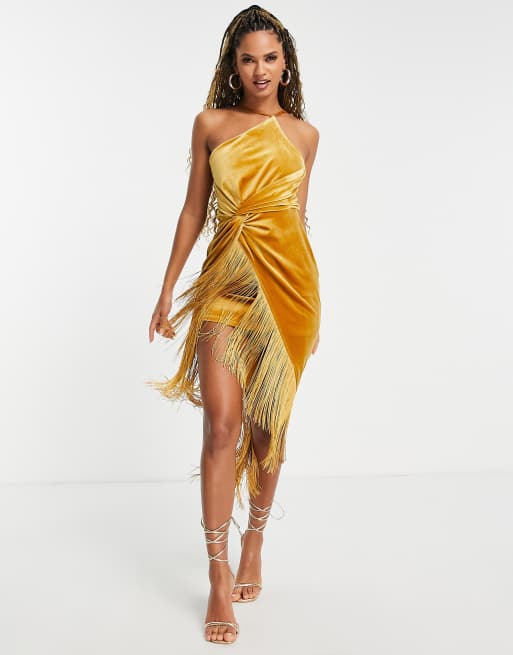 Asos yellow top fringe dress
