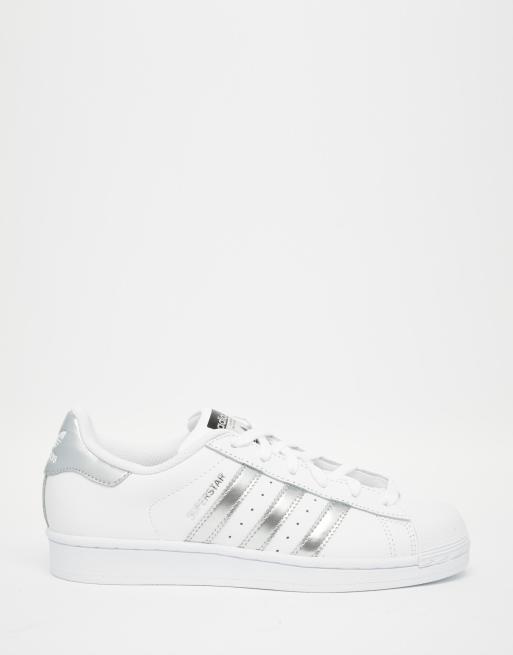 Adidas originals superstar 2 top white silver womens trainers